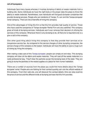 With that said however you should still know what the average prices for dumpster rentals are in your area. ASAP Site Services of Tampa has been a top provider of roll-off dumpster rentals in Tampa since 1984. Dart Dumpster Rental Tampa FL 813 337-6348.